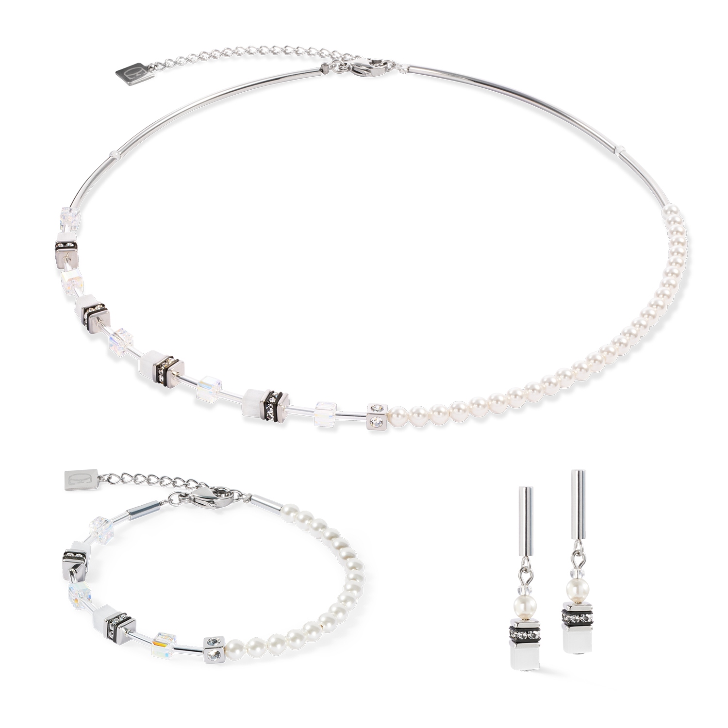 Колье GeoCUBE Mini Fusion Pearls silver-white Coeur de Lion 4087/10-1417