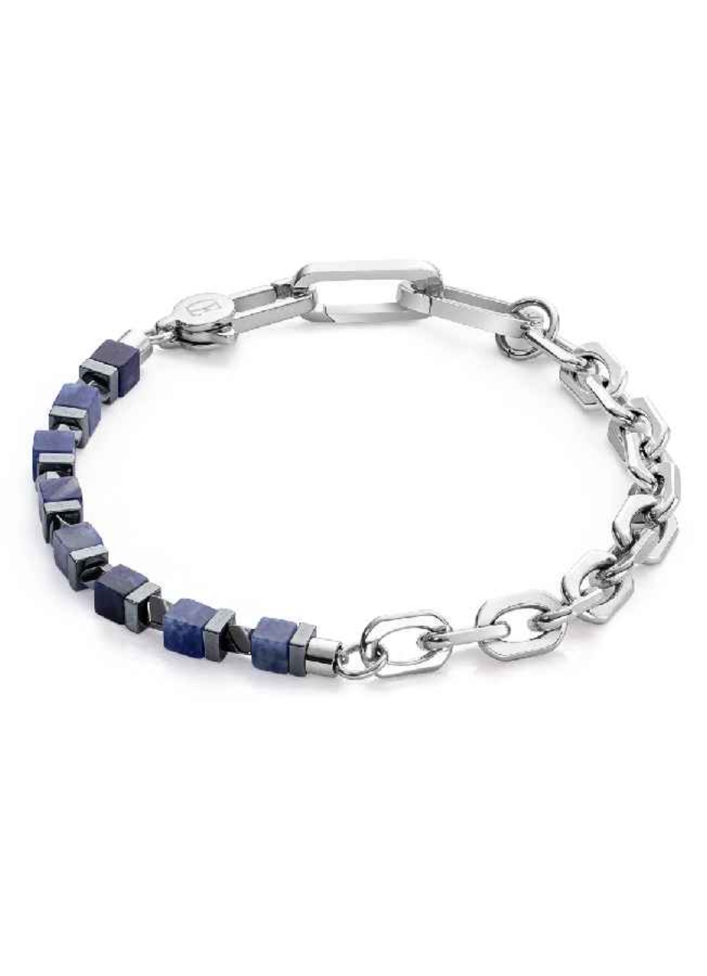Окунитесь в глубины элегантности с браслетом Precious Fusion link сине-серебристого цвета. Это изделие сочетает в себе насыщенные, яркие оттенки кубиков содалита с блеском гематита и элегантной цепочкой из нержавеющей стали. Асимметричный дизайн, гармоничное сочетание кубиков и цепочки, предлагает современный взгляд на классическую изысканность. Размер регулируется от 19,5 до 21,5 см
