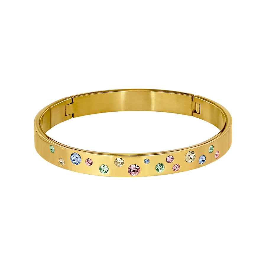 CLARE — это современный и очень элегантный браслет из нержавеющей стали, украшенный россыпью сверкающих разноцветных кристаллов. Носите его отдельно или в сочетании с другими браслетами из коллекции Dyrberg/Kern. Этот стильный браслет открывается сзади простым щелчком. Здесь он представлен в благородном золотом цвете. Гипоаллергенный сплав, не содержит никеля. Датский дизайн.