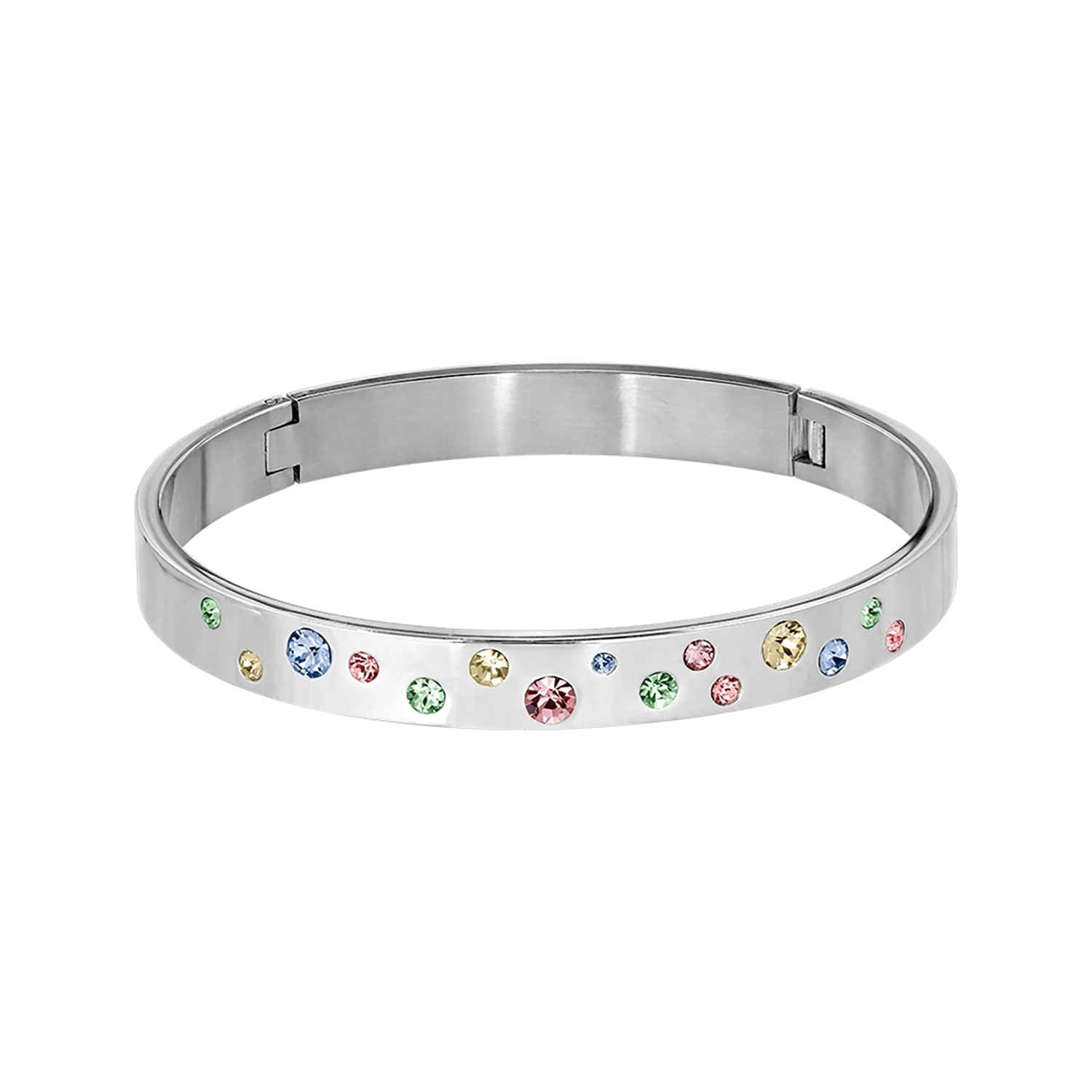 CLARE — это современный и очень элегантный браслет из нержавеющей стали, украшенный россыпью сверкающих разноцветных кристаллов. Носите его отдельно или в сочетании с другими браслетами из коллекции Dyrberg/Kern. Этот стильный браслет открывается сзади простым щелчком. Здесь он представлен в классическом серебристом цвете. Гипоаллергенный сплав, не содержит никеля. Датский дизайн.