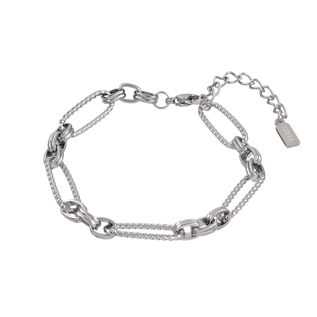 Элегантные кручёные овальные звенья придают украшению динамику. Надёжный замок-карабин легко открывается и закрывается одной рукой.