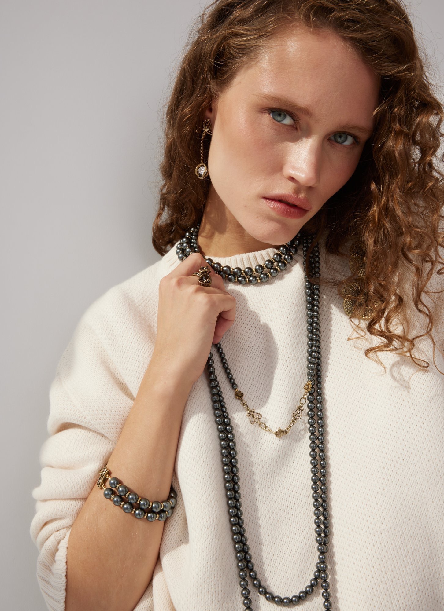Браслет EREDITA DEI MONARCHI BR1863 PERLA GRAFITE от итальянского бренда Fiore di Firenze - это дань величию королевских династий, воплощённая в металле и жемчуге. Жемчуг майорика в графитовом оттенке, окружённый патинированным орнаментом, создаёт эффект старинного артефакта, найденного в сокровищнице флорентийского дворца.