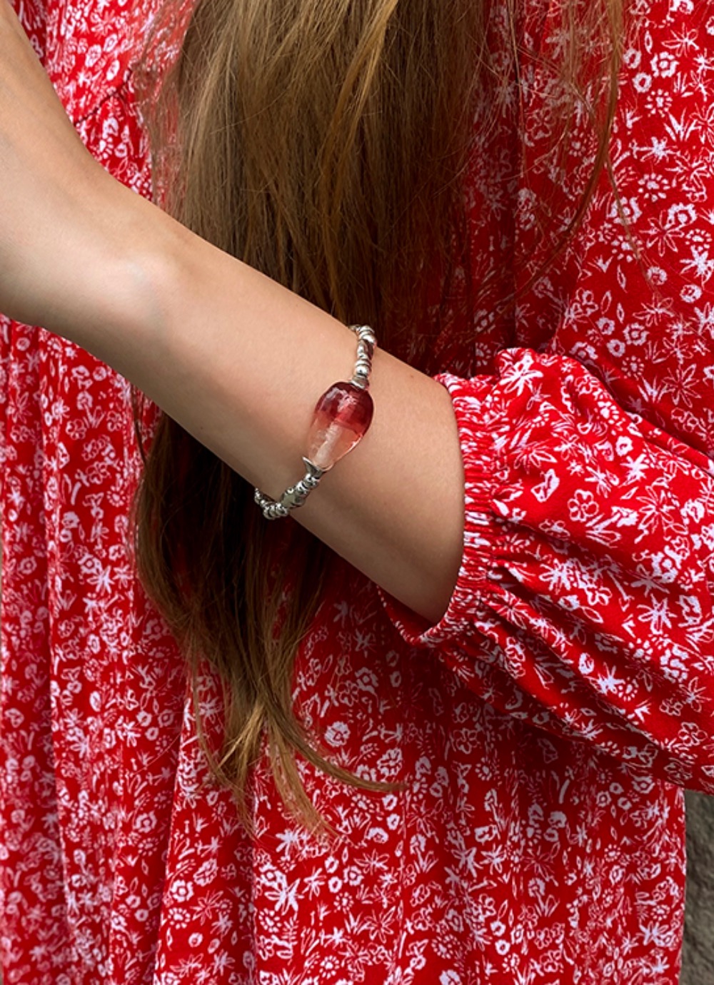 Вставка из муранского стекла розового цвета.