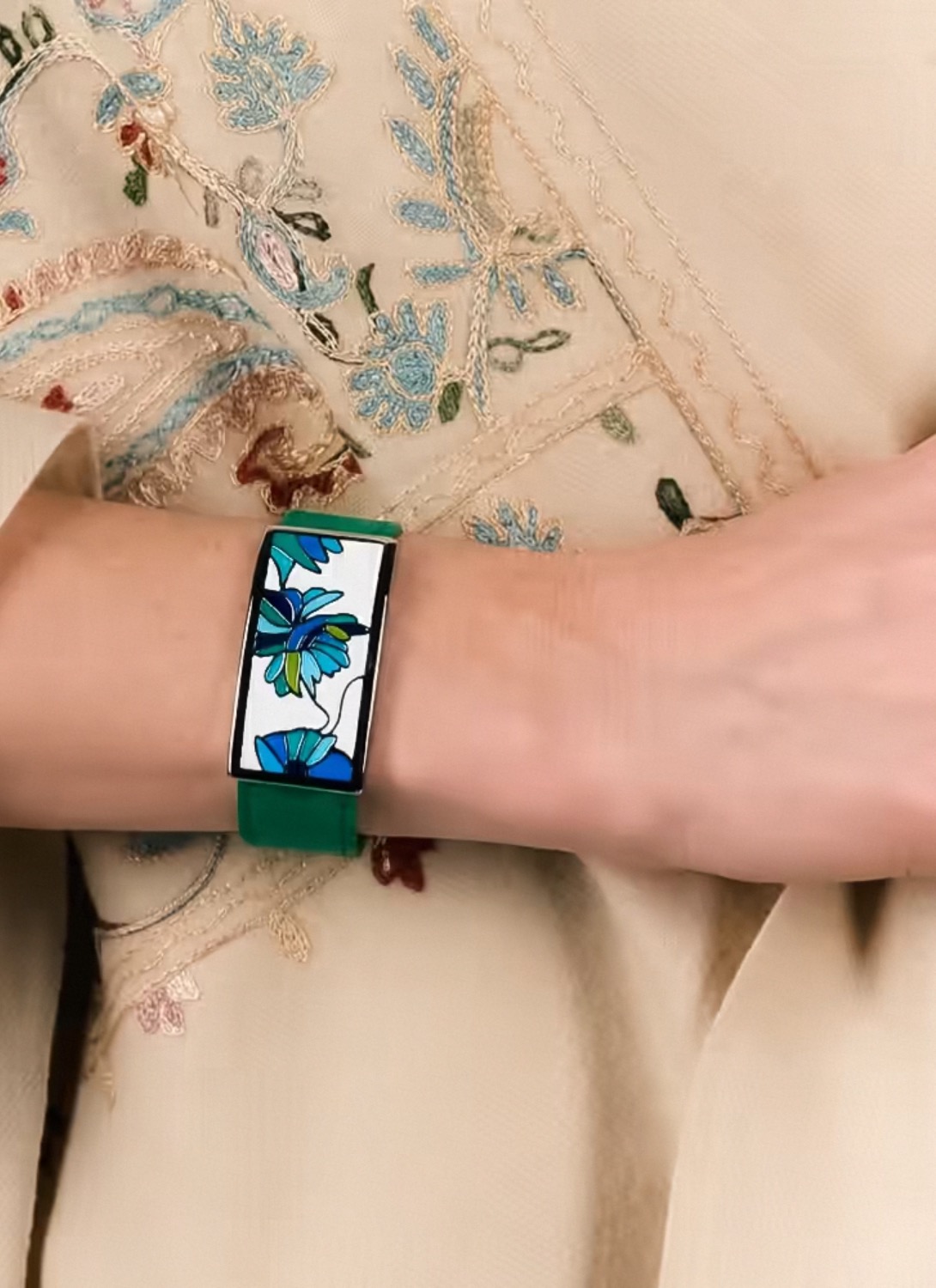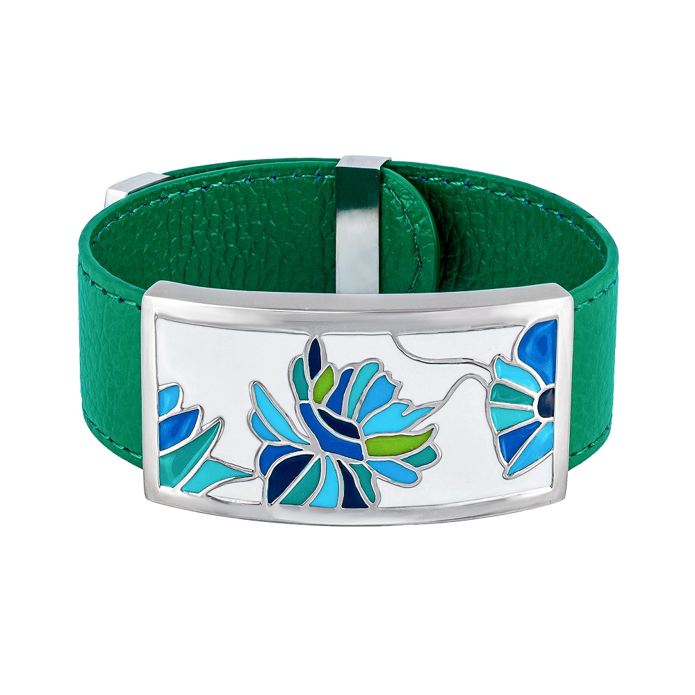 Браслет на зеленом кожаном ремешке Fiore Luna CB13599-3A