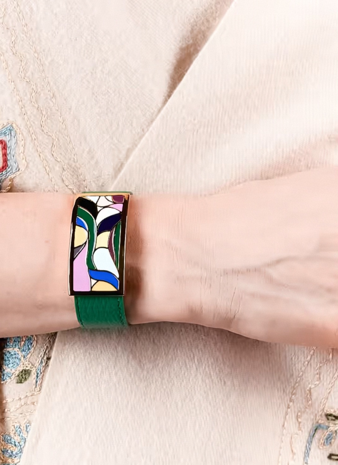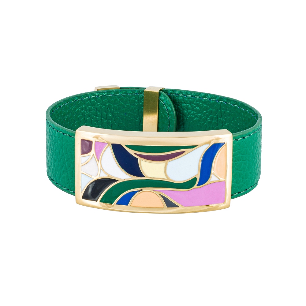 Браслет на зеленом кожаном ремешке Fiore Luna CB13600-17