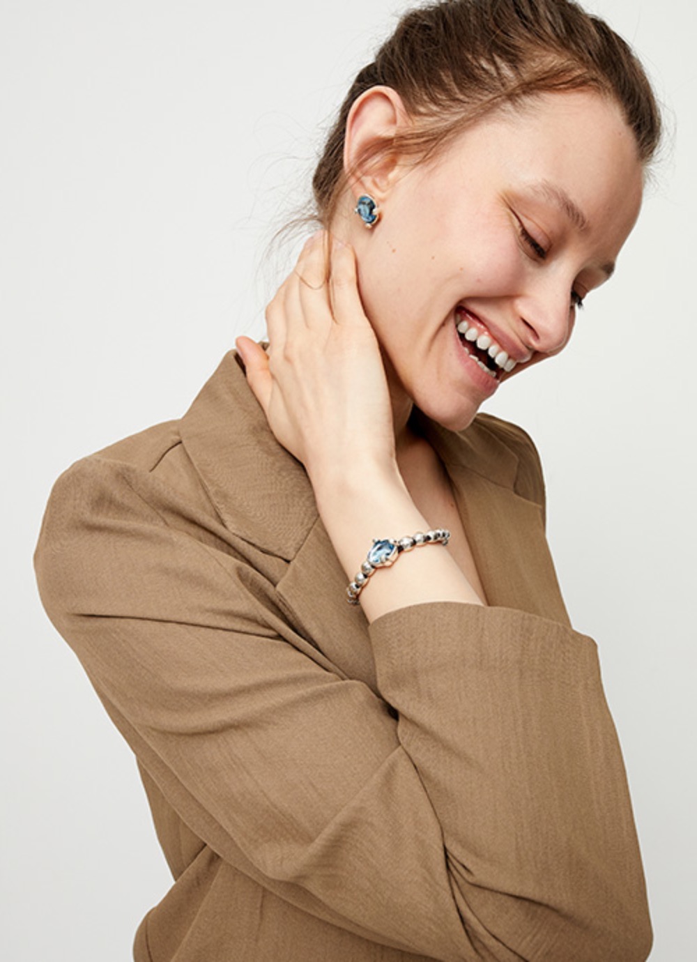 Уникальные украшения ручной работы UNOde50. Браслет Ser Deslumbrante с голубым кристаллом, с серебром из коллекции Ser Deslumbrante. Размер M. Цвет голубой.