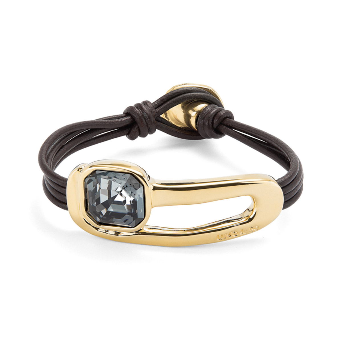 Уникальные украшения ручной работы UNOde50. Кожаный браслет Ser Expresiva с черным кристаллом, с золотом из коллекции Ser Expresiva. Размер L. Цвет черный.