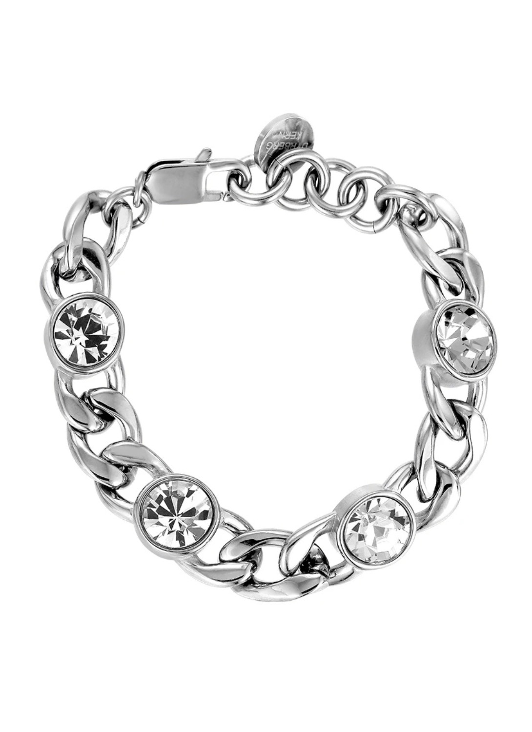 Браслет ARIANE (арт. 430036) от датского бренда Dyrberg Kern - смелое заявление: "Роскошь может быть повседневной". Массивная цепь из нержавеющей стали с серебристым покрытием украшена пятью хрустальными фасетированными кристаллами Swarovski. При движении они переливаются, создавая эффект «жидкого света». Длина браслета - 17 см, плюс 5 см удлинительная цепочка для идеальной посадки на любом запястье.