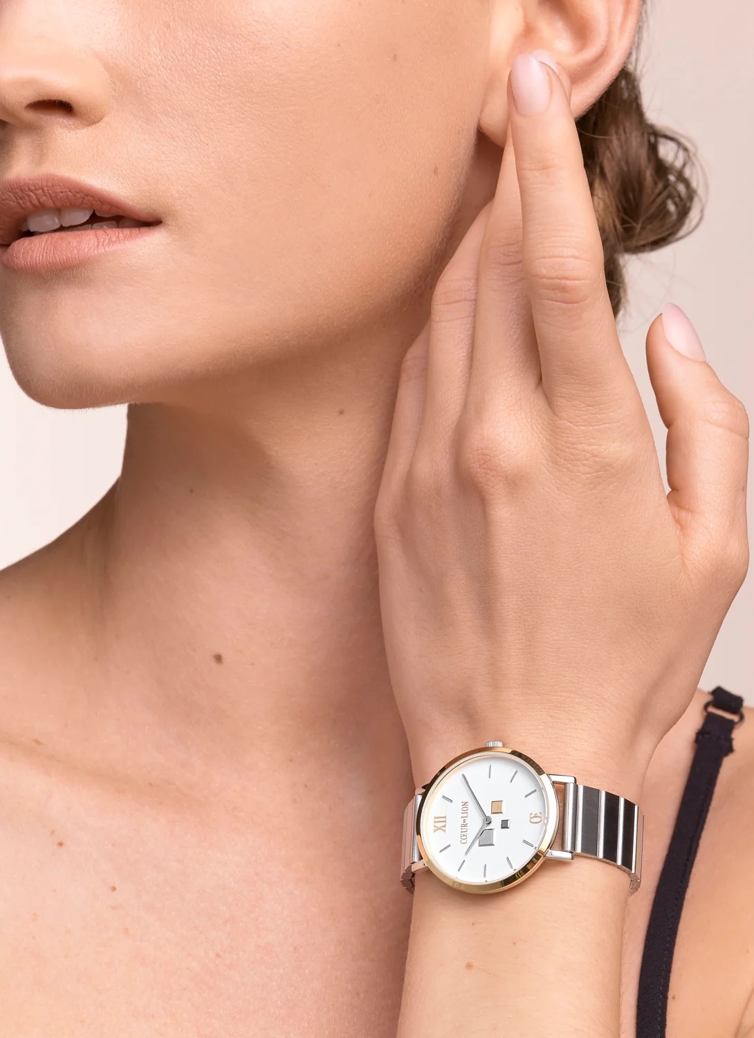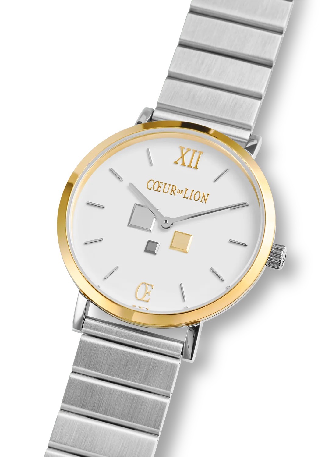 Coeur de Lion, продолжая свою ювелирную философию, создал функциональную модель часов Bicolor Silver: каждая деталь продумана, покрытие долговечно и эстетично. Матовая текстура браслета часов и глянцевый блеск безеля создают интересный контраст, подчёркивающий трёхмерность формы.