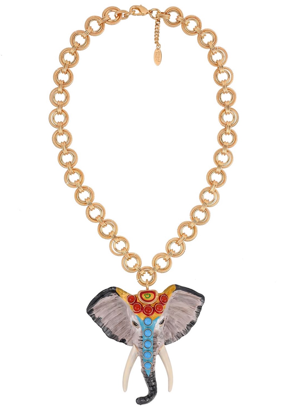 Подвеска в форме слона. Размер цепи: длина 56 см, ширина 1,7 см. Размер кулона: длина 9,5 см, ширина 9,5 см.