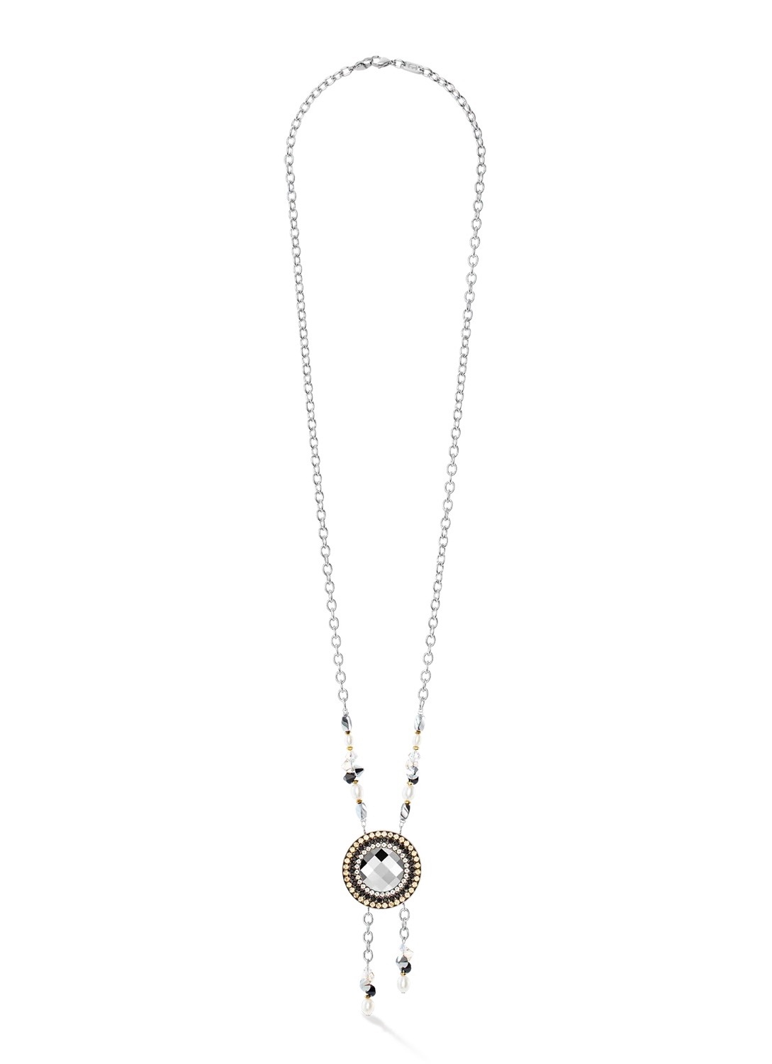 Ожерелье Amulet Boho Pearls в черном и белом цветах из коллекции Multi-Wear — настоящая находка для любителей стиля бохо. Вдохновленный непринужденной элегантностью этого стиля, сверкающий амулет сочетает в себе сияющие кристаллы черного, серебряного, хрустального и золотого цветов с овальными пресноводными жемчужинами. Такое сочетание придает ожерелью особую игривую и элегантную ауру. Благодаря регулируемой серебряной цепочке ожерелье можно носить на разной длине — как короткое и плотно прилегающее к шее, так и длинное и непринужденное. Благодаря своей универсальности оно станет идеальным аксессуаром для любого случая. Оно особенно красиво смотрится в сочетании с другими украшениями, которые создают популярные многослойные образы и придают вашему наряду особую изюминку. Ожерелье Amulet Boho Pearls — это универсальное украшение, которое легко сочетает в себе современный шик в стиле бохо и классическую элегантность.
