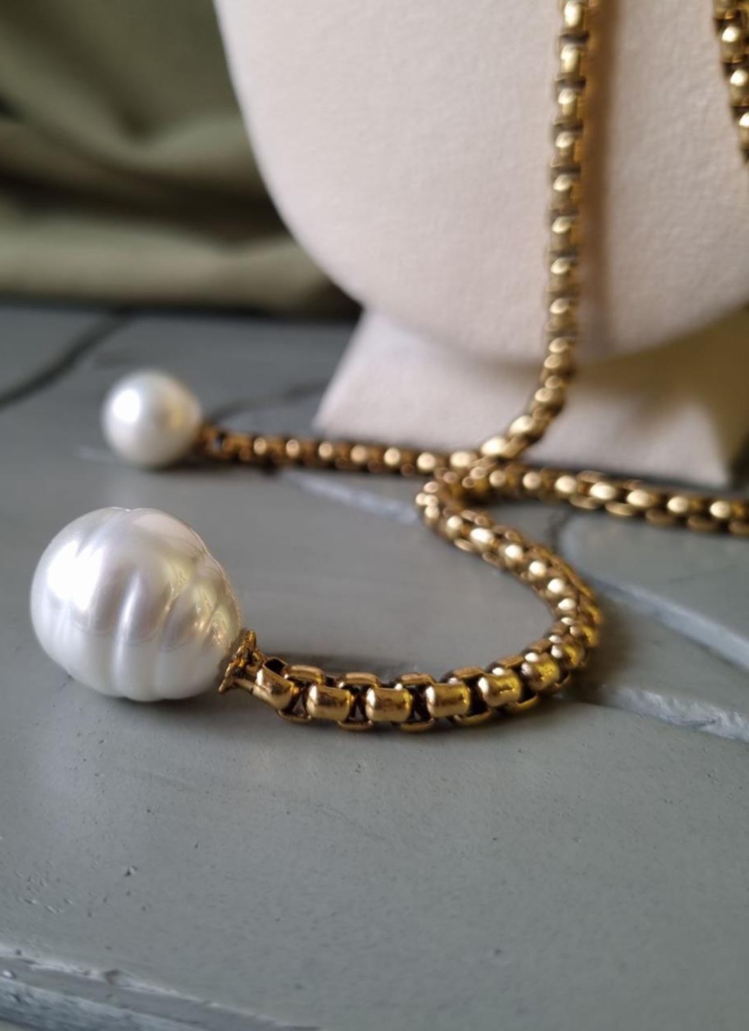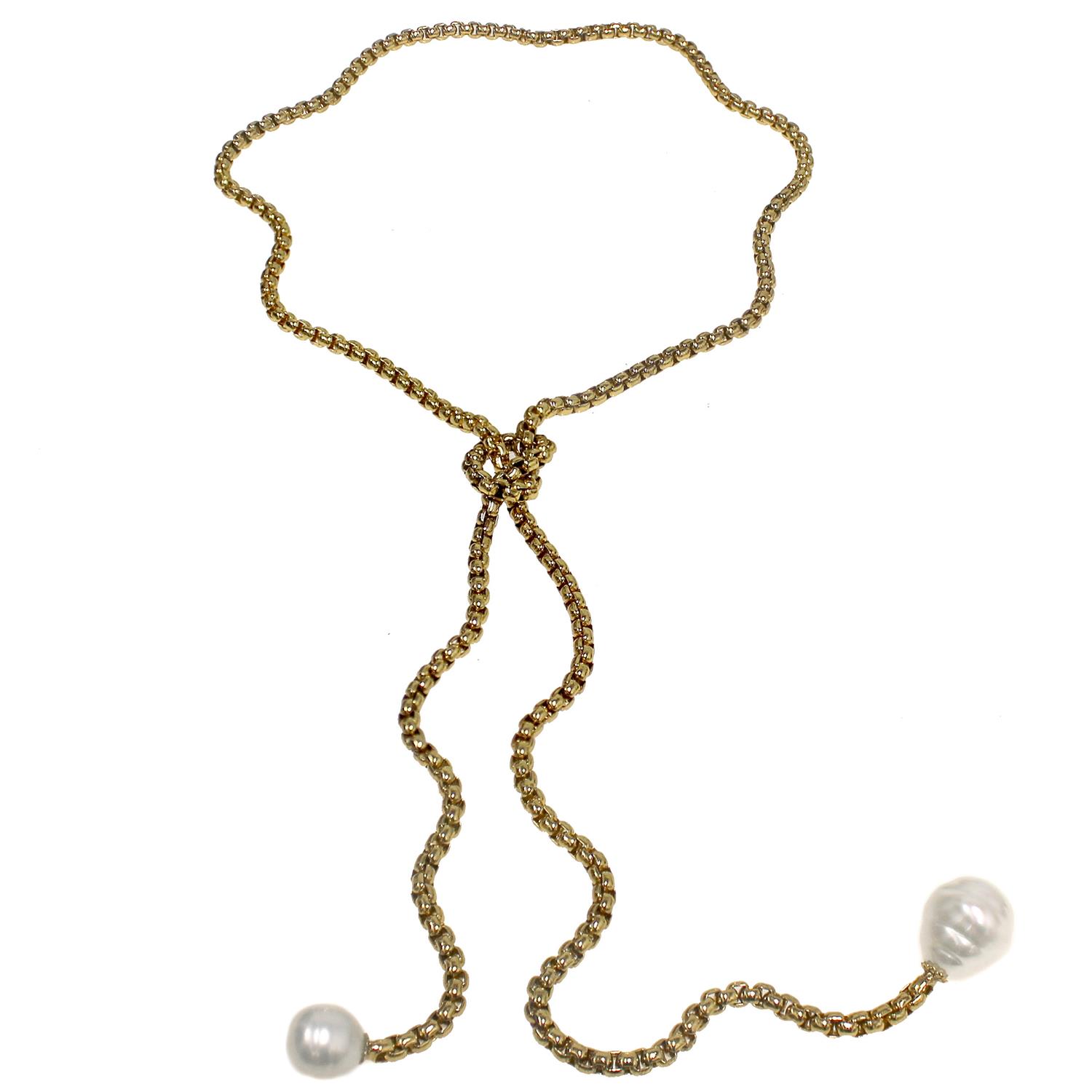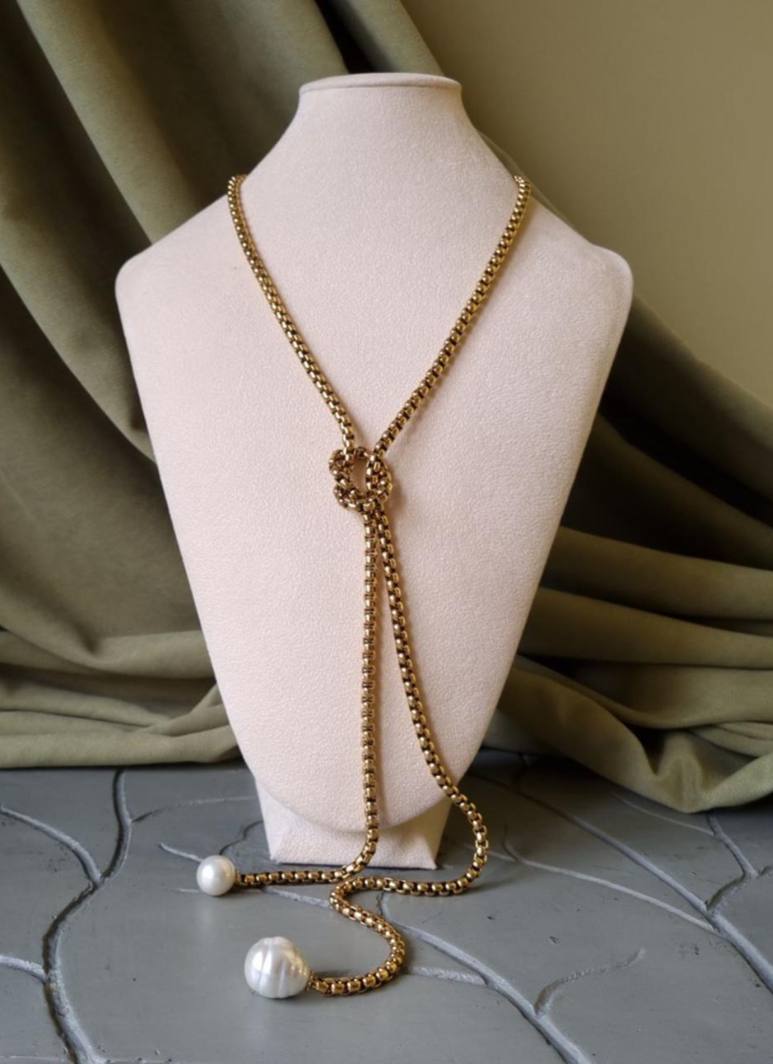 Колье «Связь» (арт. CC00205413) от итальянского бренда Claudio Canzian - это элегантная поэма в металле и жемчуге. Длинная цепочка, завязанная в мягкий узел, становится символом единства, гармонии и неразрывных связей - будь то любовь, дружба или внутренняя целостность. На концах цепи две крупные жемчужины Майорика диаметром 1,5 см, чья матово-перламутровая поверхность добавляет образу утончённости, света и женственности.