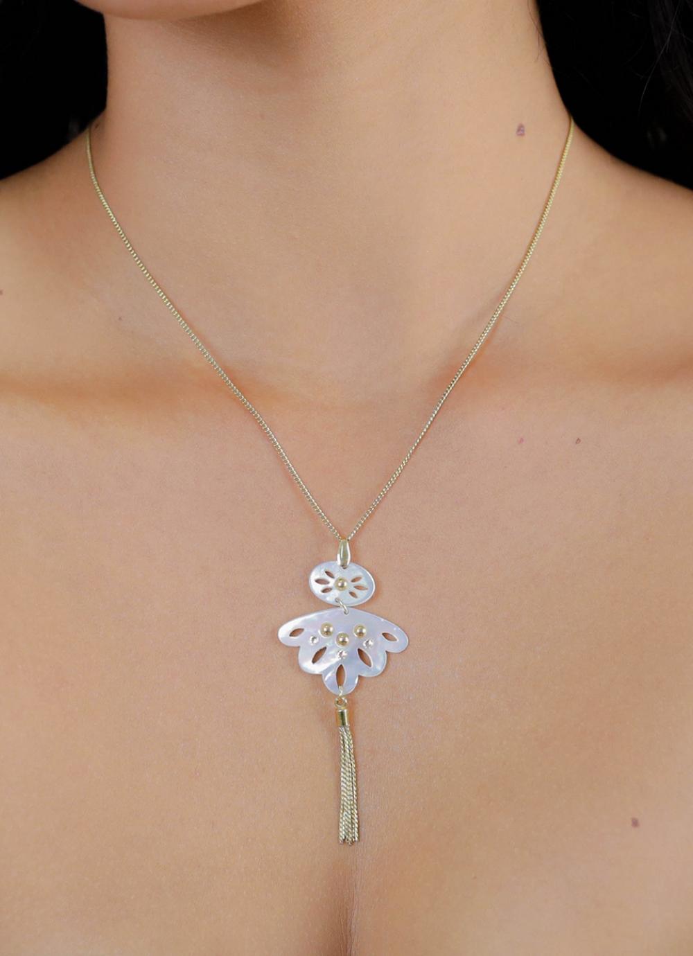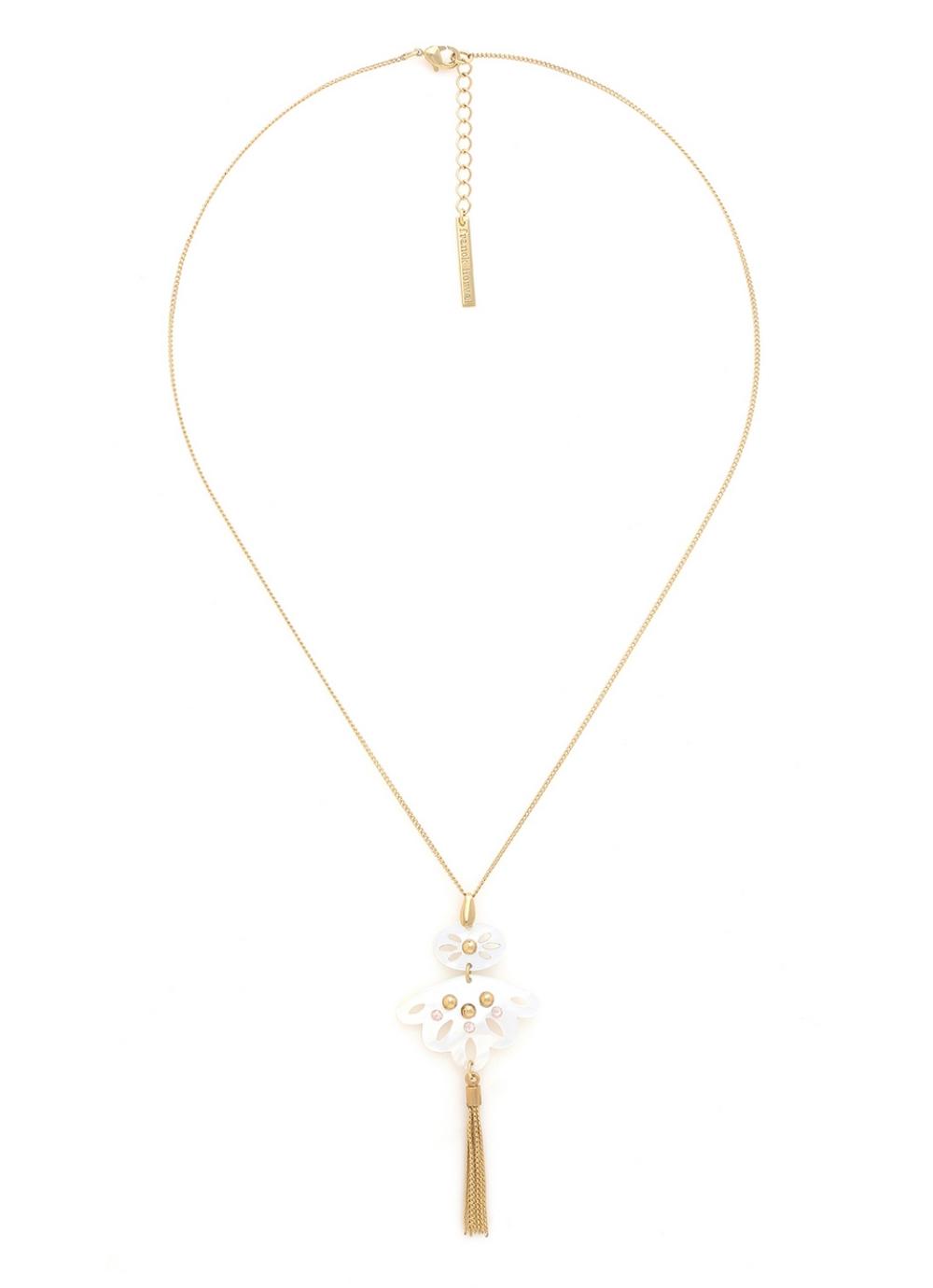 Колье выполнено из высококачественного бижутерного сплава с покрытием из позолоты.