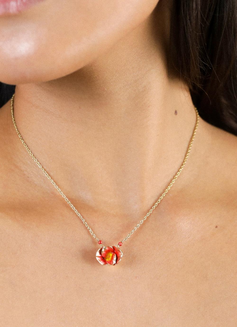 Особое внимание заслуживает подвеска в виде цветка из натурального агата и украшенная яркой цветной эмалью.