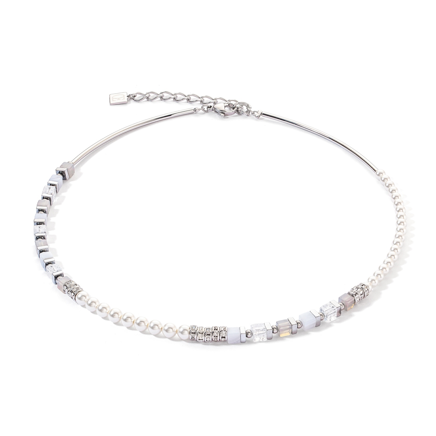 Ожерелье Precious Fusion Offset серебристо-голубого цвета: асимметричное, захватывающее, необычное. Сделайте настоящий стильный акцент с ожерельем Precious Fusion Offset серебристо-голубого цвета! Это ожерелье нарушает традиции и вносит глоток свежего воздуха в вашу коллекцию украшений благодаря своему смелому асимметричному дизайну. Кубики из настоящего камня — халцедона, агата и горного хрусталя — сочетаются с мерцающим хрустальным жемчугом и сверкающими кристаллами — сочетание, которое одновременно неожиданно и неотразимо. Будь то дополнение к простому наряду или изюминка вашего образа — это ожерелье гарантированно привлечёт внимание. Носите ожерелье Precious Fusion Offset, если вам хочется чего-то особенного и вы хотите показать, что не боитесь нарушать правила стиля!
