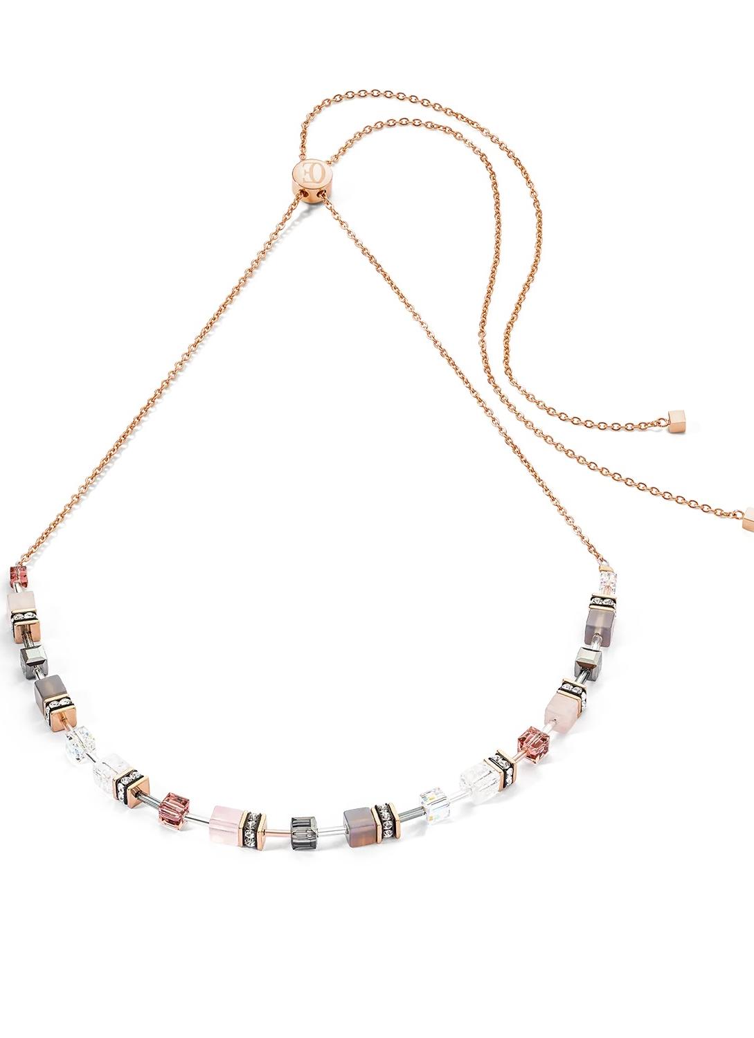 Колье GeoCUBE Iconic Nature Chain Rose-Grey Coeur de Lion. Артикул 3035/10-1912. Вставки: Агат, розовый кварц, горный хрусталь, Swarovski. Длина регулируется от 30 см до 79 см.