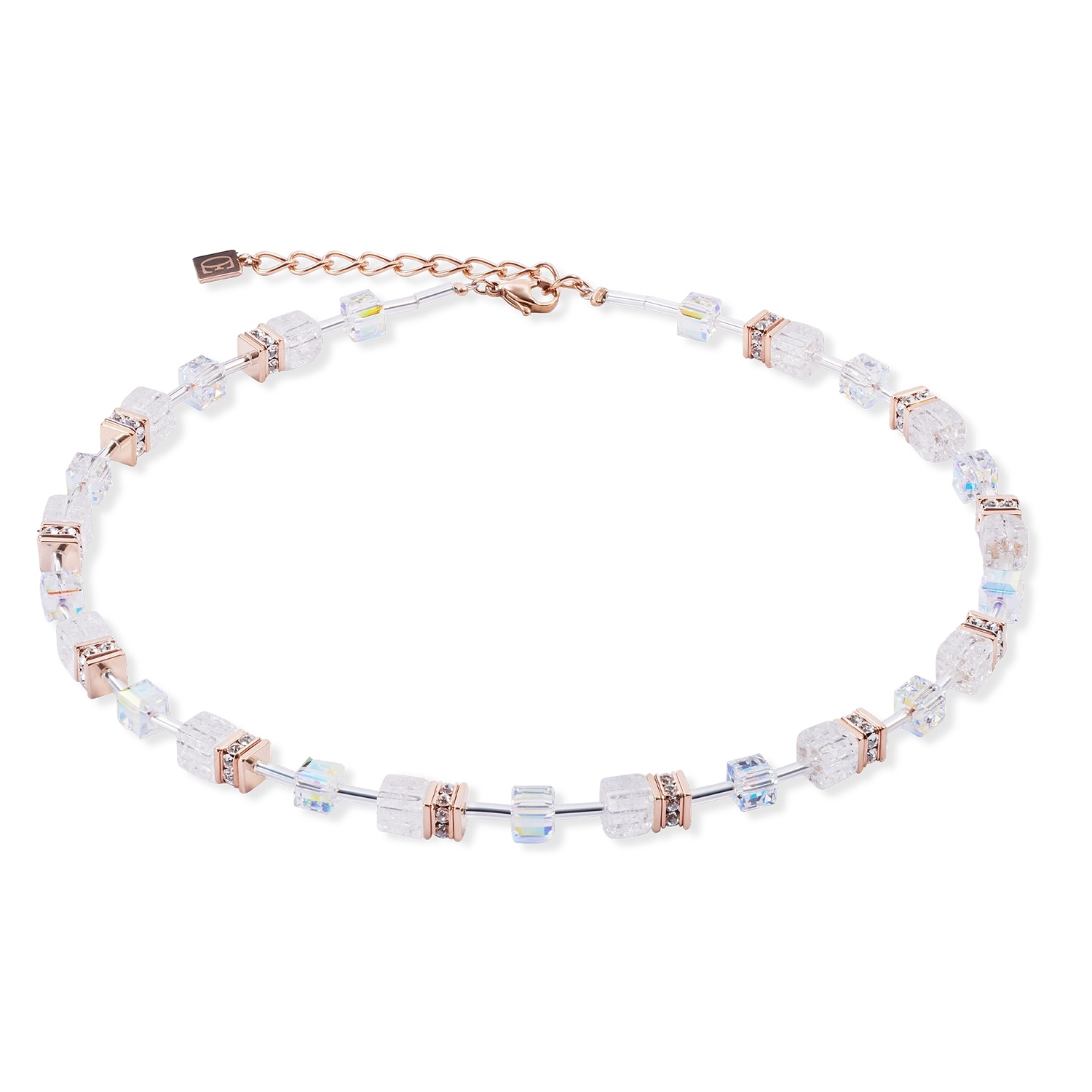 Неподвластная времени элегантность и природная энергия - культовое колье GeoCUBE® Nature сочетает в себе нежное тепло нержавеющей стали с чистой красотой горного хрусталя. На протяжении веков горный хрусталь считался камнем чистоты и гармонии - считается, что он успокаивает ум, укрепляет внутреннее равновесие и дает положительную энергию. Культовые элементы GeoCUBE® придают этому изделию современную легкость, а сияющий белый цвет хрусталя идеально гармонирует с элегантным цветом розового золота.