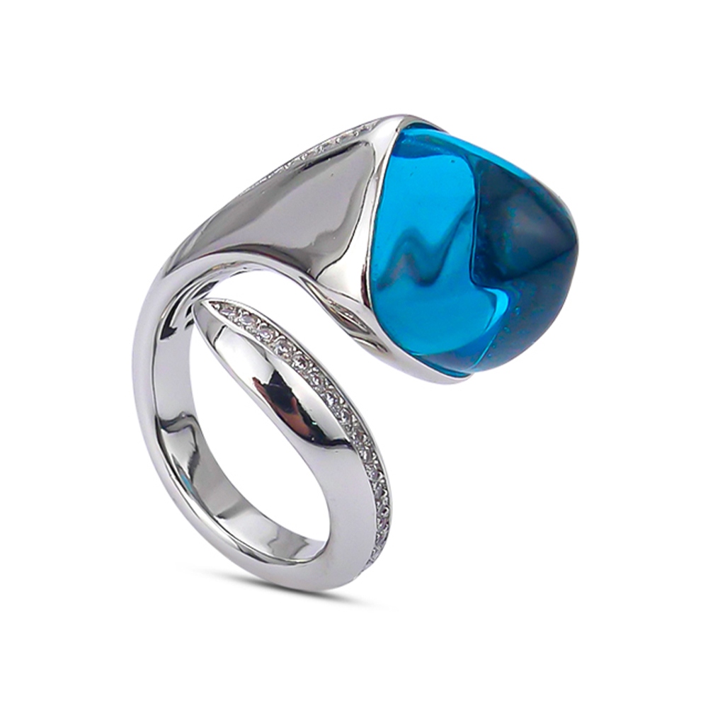 Кольцо с кристаллом светлого сапфира и дорожкой из кубического циркония. Размер регулируется от 13 до 20