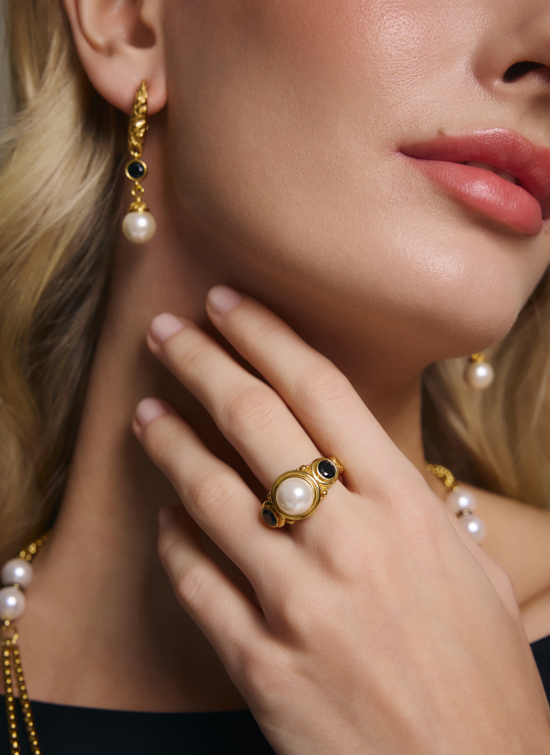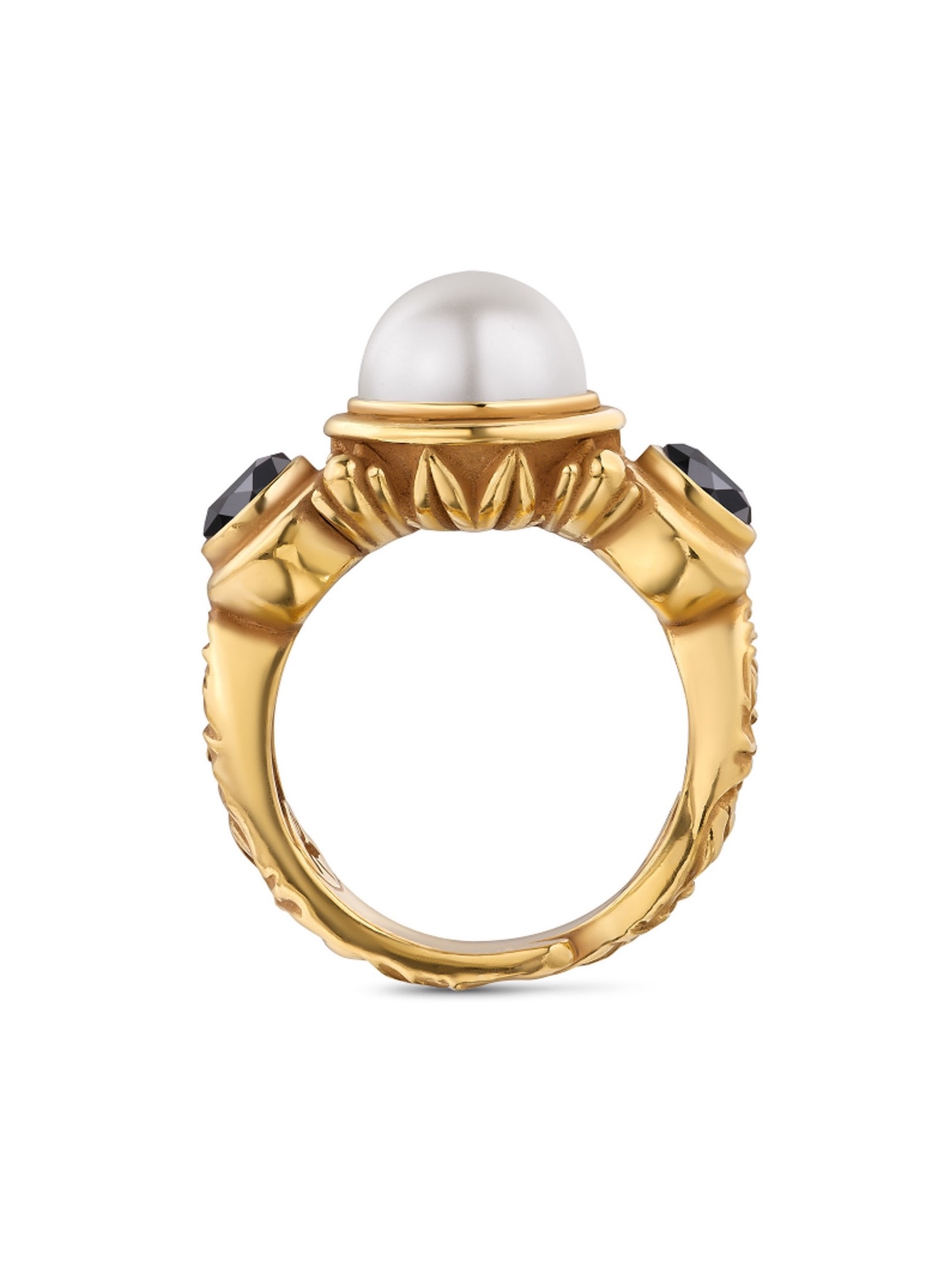 Акцентное позолоченное кольцо из латуни с фианитами