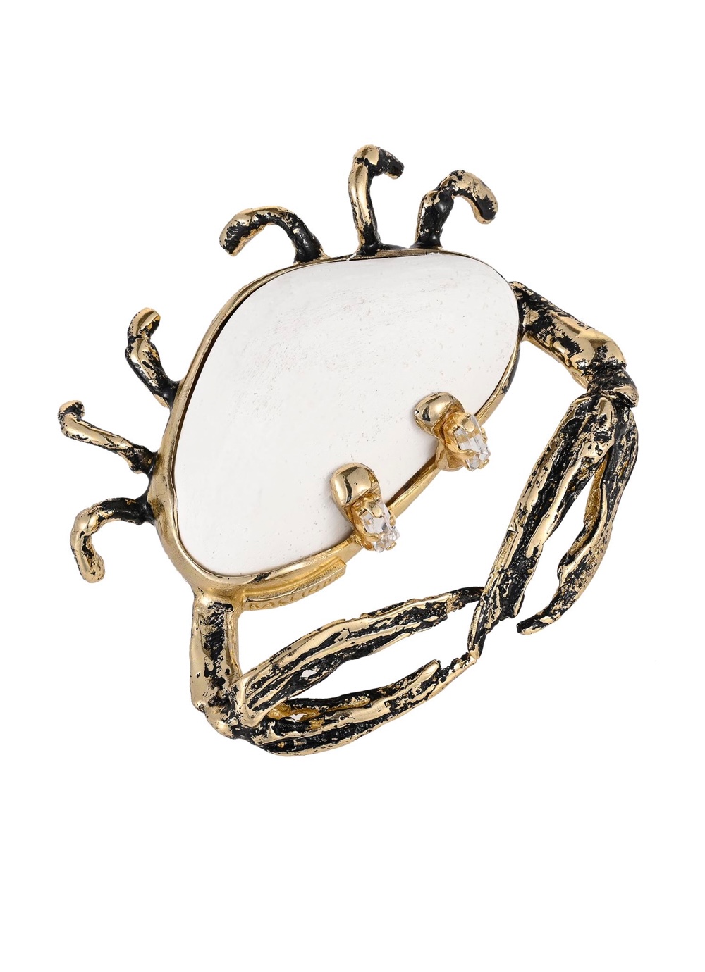 Кольцо из коллекции Sea Creatures греческого бренда Kalliope о вставкой из смолы в форме краба.