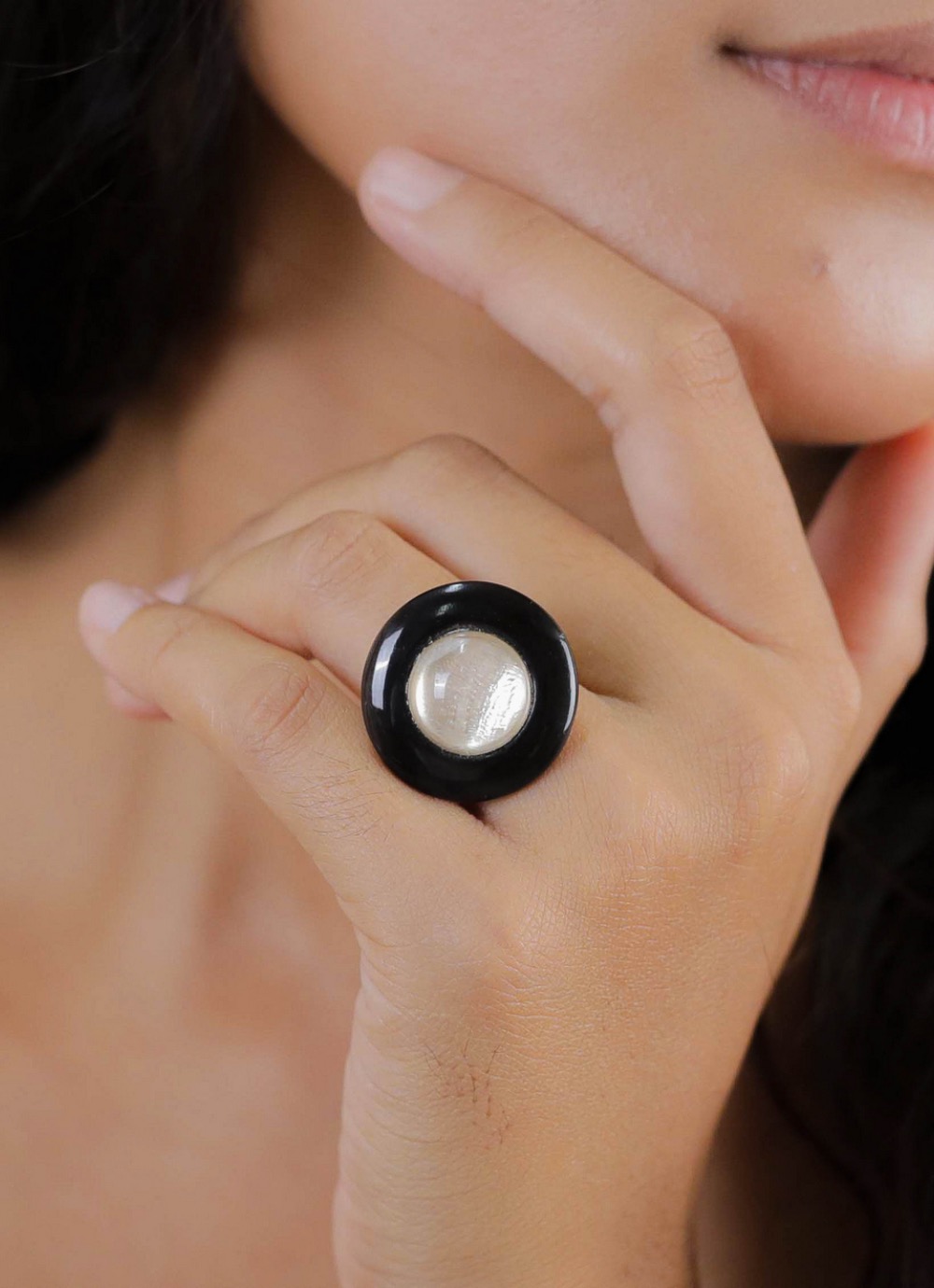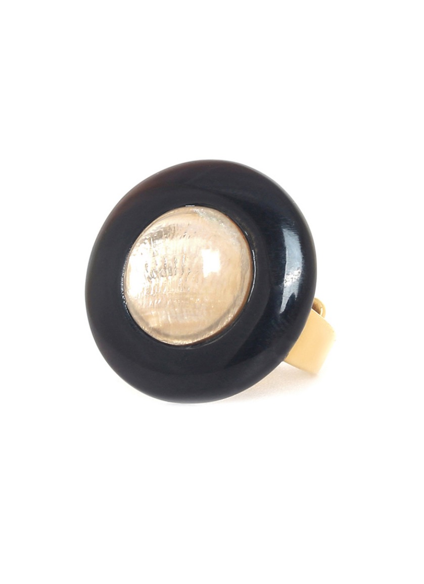 Кольцо Sain Honore разъемное с рогом и ракушкой Capiz в смоле от французского бренда Nature Bijoux.