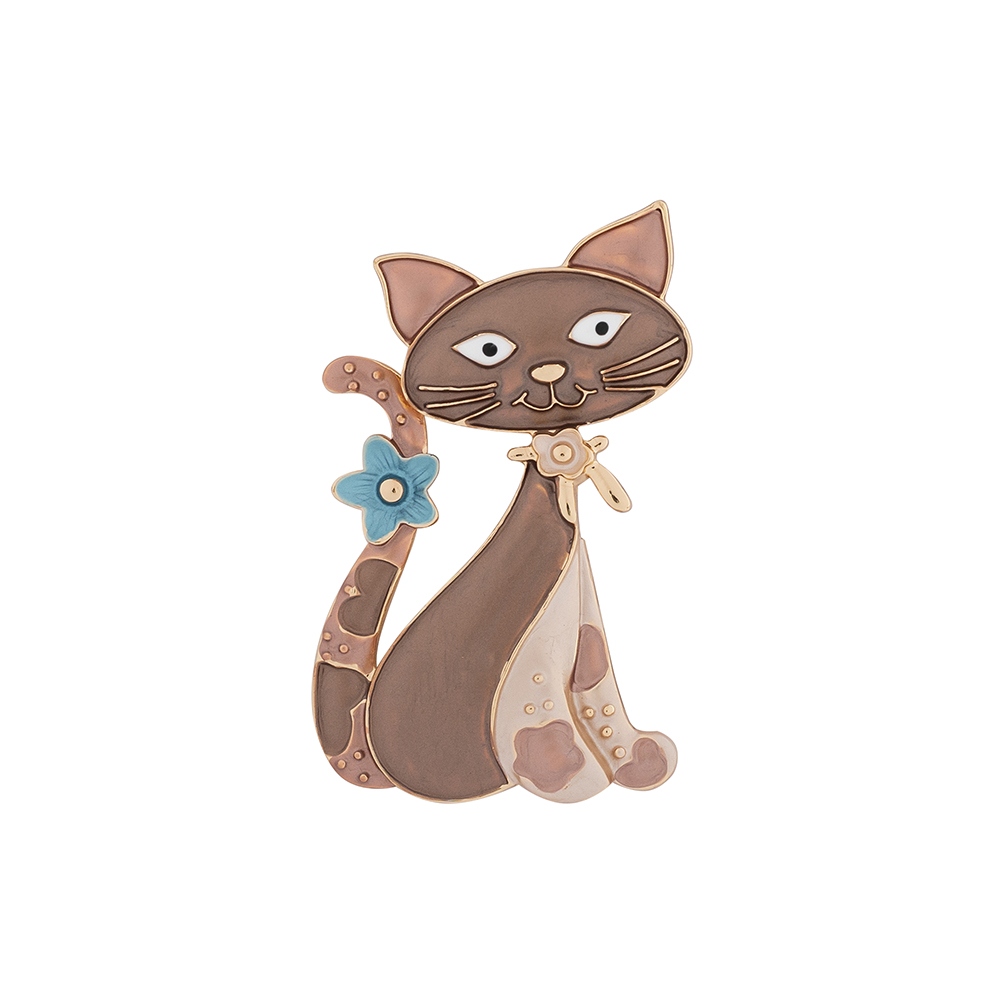 Брошь  Кот с цветком