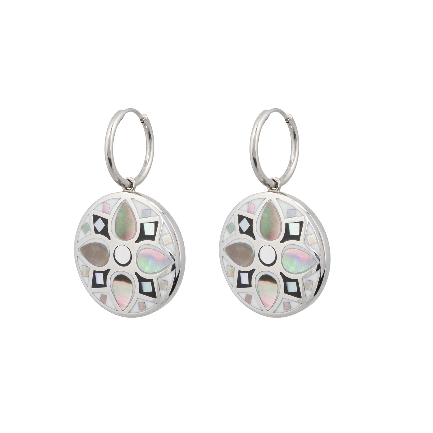 Элегантные серьги от бренда Fiore Luna предлагают новое прочтение стиля ар-деко. Сережки с массивными круглыми подвесками дополнят любой образ и, несомненно, привлекут всеобщее внимание благодаря лаконичному дизайну и шармам, декорированым эмалью. Серьги выполнены из гипоаллергенного бижутерного сплава. Комфортные итальянские застежки надежно фиксируют их на ушах. Лёгкие, стильные и универсальные, эти серьги прекрасно дополнят как повседневный, так и праздничный образ.
