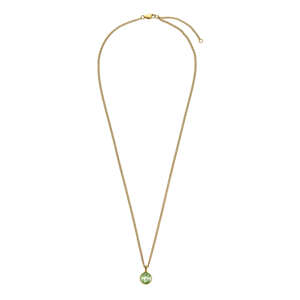 ETTE — красивая и классическая цепочка из нержавеющей стали, украшенная гранёным кристаллом в современной оправе. Здесь представлена в великолепном светло-зелёном цвете с золотой отделкой. ДАТСКИЙ ДИЗАЙН — не содержит кадмия, свинца и никеля.