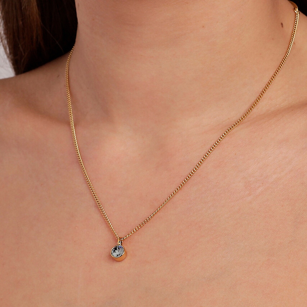 JEMMA - классическая и очень удобная цепочка на шею с крупным кристаллом Swarovski. Здесь представлено сочетание прохладного городского серого кристалла на золотой основе.