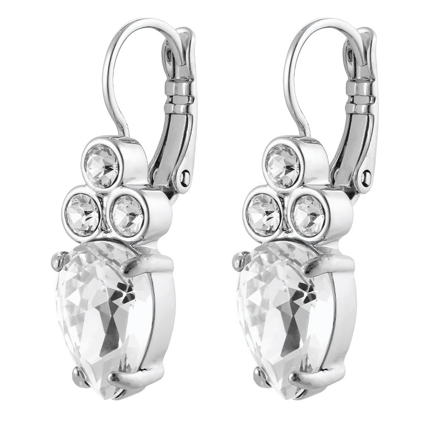 BERLE - шикарные серьги с одним крупным и тремя небольшими кристаллами. Классические и одновременно необычные. Застежка – французский замок, выполнен из хирургической стали. Здесь представлены классические белые кристаллы на серебристой основе. Ручная работа. Датский дизайн, не содержит никеля.