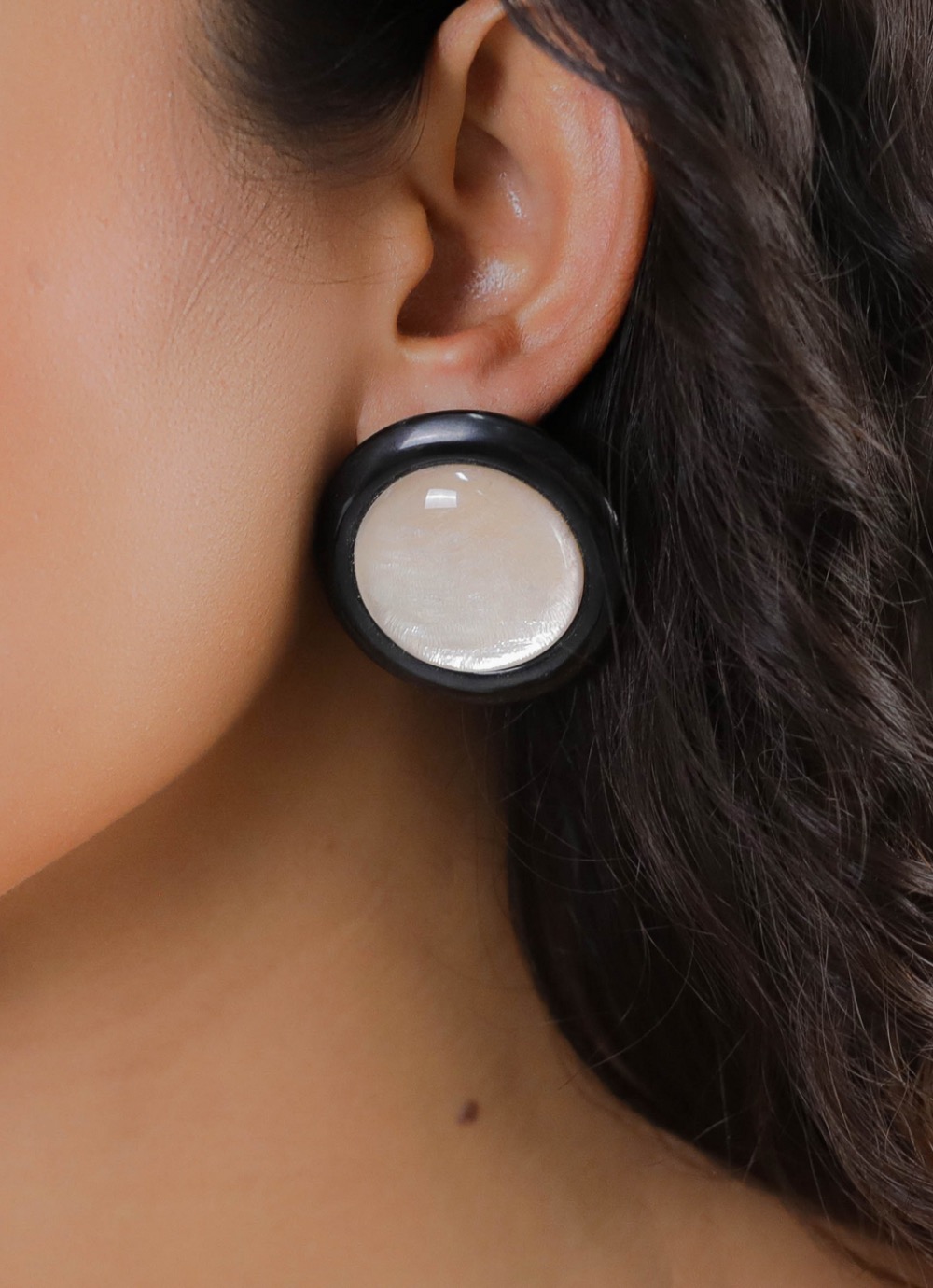 Клипсы Sain Honore с рогом и ракушкой Capiz в смоле — изысканное украшение от французского бренда Nature Bijoux.