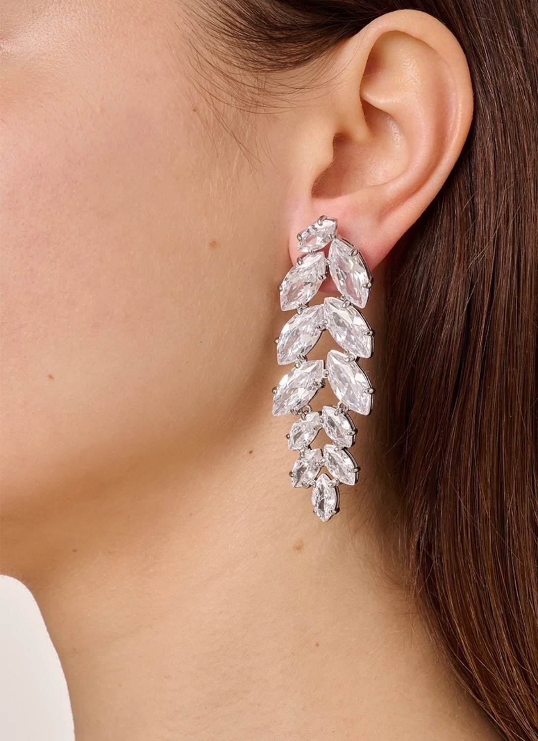 Серьги BANYAN (арт. 470038) от датского бренда Dyrberg Kern - это воплощение чистоты и утончённой элегантности. Двенадцать наветт (каплевидных кристаллов) расположены в непрерывной последовательности, создавая иллюзию кристальных лепестков, мягко обрамляющих линию шеи. Серебристое покрытие на полированной латуни придаёт изделию холодное, но мягкое сияние, а общая длина серьги - 60 мм - делает её заметным, но изысканным акцентом любого образа.