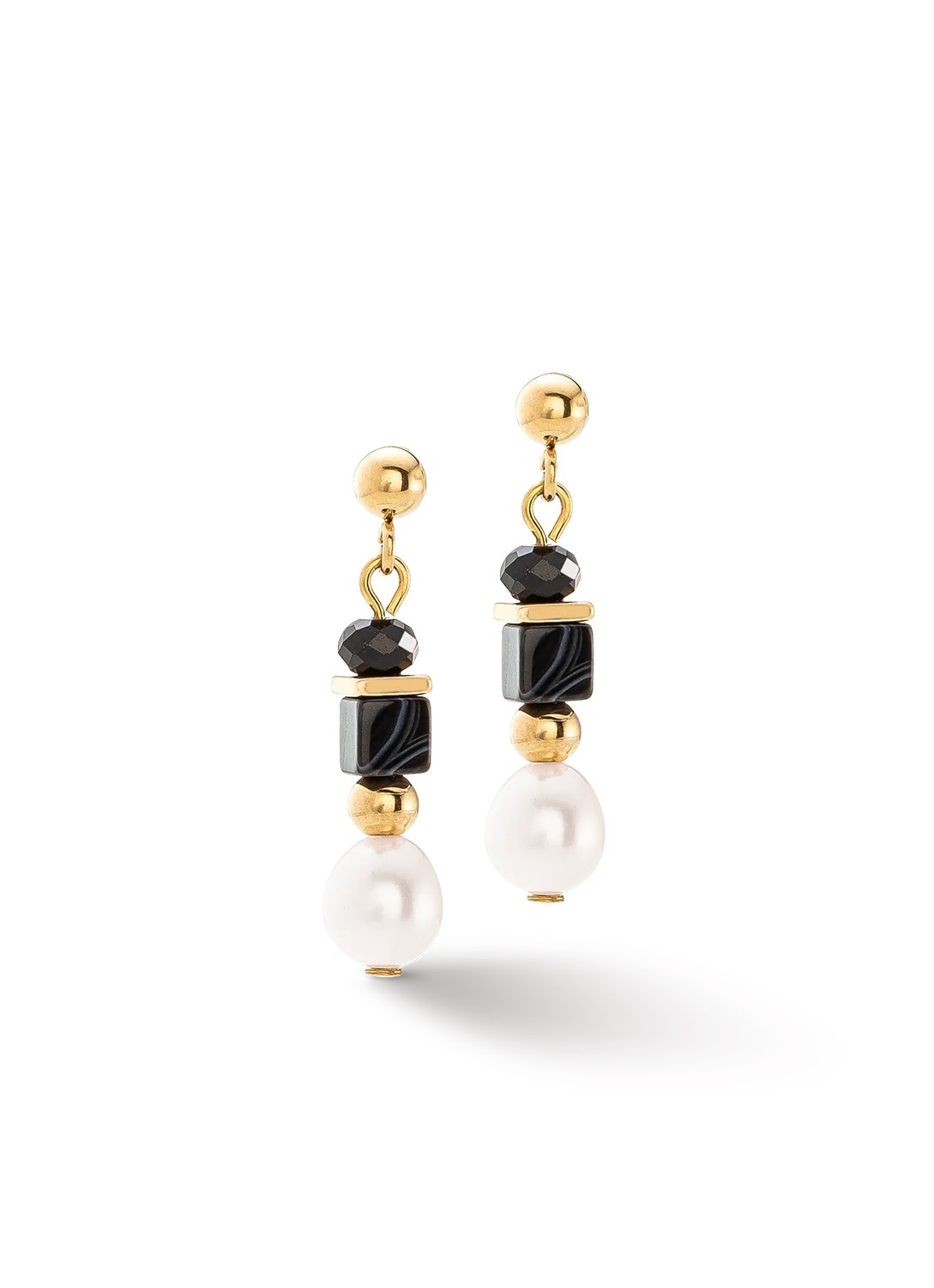 Серьги Black-White Coeur de Lion с черным камнем и жемчужиной. Артикул 1132/21-1314