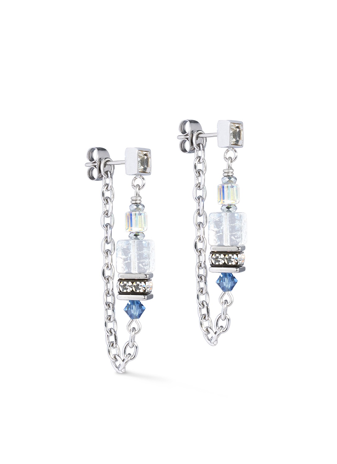 Нежные, игривые, но с характером - серебристые с белым серьги Sunray Cube Bohème украшены мерцающими кубиками горного хрусталя и сияющими кубиками Swarovski®, которые мягко переливаются при каждом движении. Серебристые цепочки придают образу современную легкость и в то же время создают атмосферу утонченности и непринужденности.