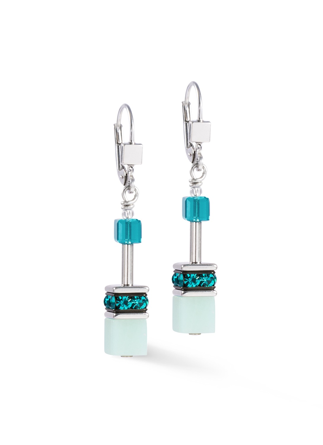 Нежный зелёный цвет, элегантное сияние — серьги GeoCUBE® Iconic Precious серебристо-бирюзового цвета очаровывают своим свежим видом амазонита в сочетании с сияющими кристаллами Swarovski®. Продуманные формы и серебристая отделка создают современный, лёгкий и в то же время выразительный образ.