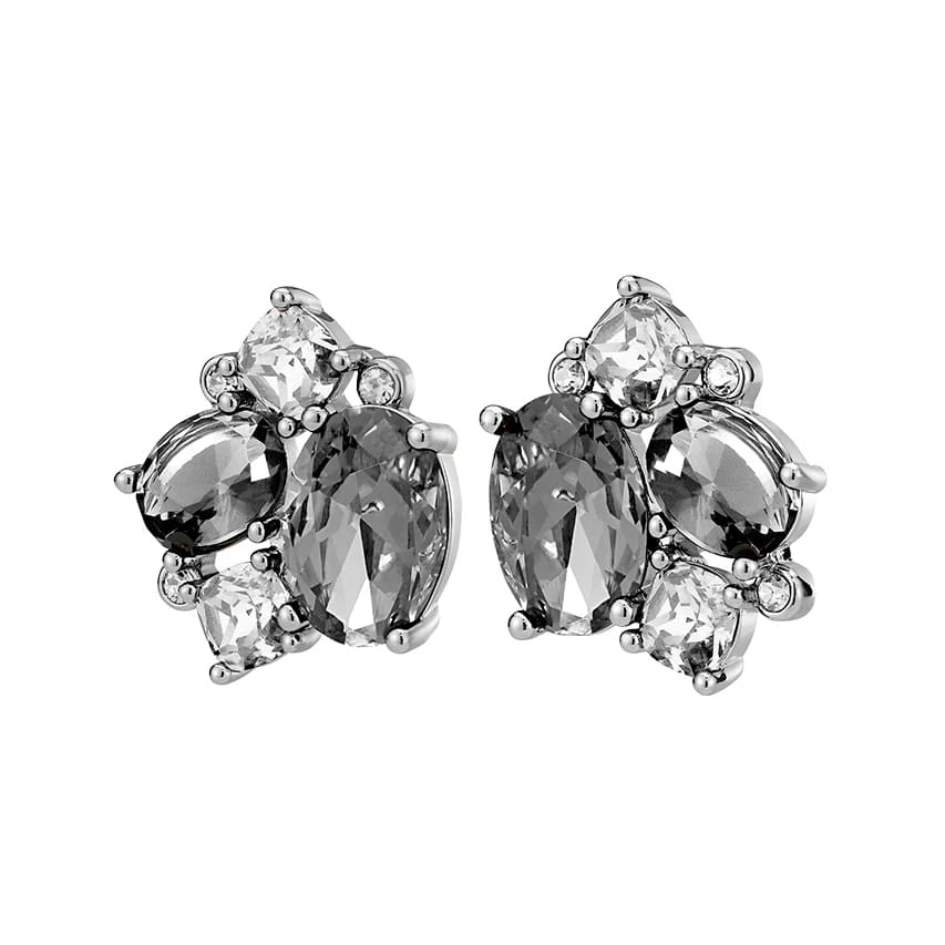 EMMA — серьги-подвески EMMA возвращают ощущение 1950-х годов — время женственное и невероятно шикарное. Триколор цветов оживляет три больших кристалла, соединённых с тремя маленькими кристаллами. Изготовлены из полированной латуни с качественным покрытием, которое прослужит долго. Здесь представлены светло- и тёмно-серые кристаллы на серебристой основе. Датский дизайн без никеля ручной работы.