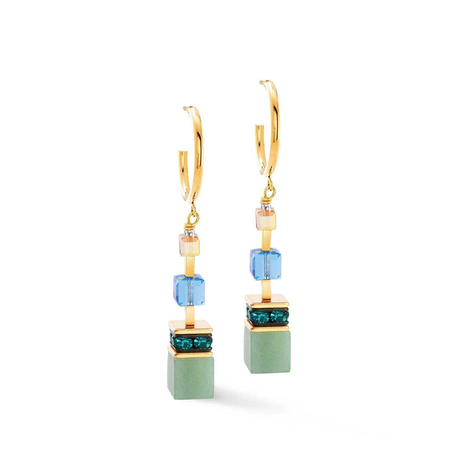 Игривые, яркие, элегантные — серьги GeoCUBE® Precious Statement в золотисто-весенних тонах передают тёплые, свежие оттенки весны. Сияющие кристаллы Swarovski®, изящные драгоценные камни и золотые акценты переливаются при каждом движении и создают образ, сочетающий лёгкость и роскошь.