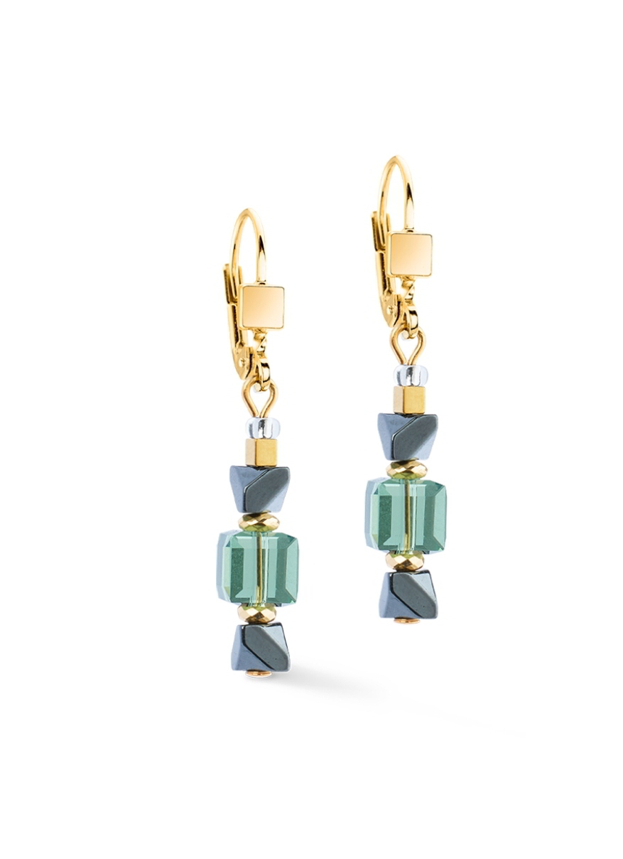 Стильные серьги от немецкого бренда COEUR DE LION - яркий акцент и изысканное сочетание кристаллов цвета шалфея, гематита антрацитового оттенка и золотистых акцентов из нержавеющей стали создаёт лёгкий, современный и невероятно эффектный дизайн.