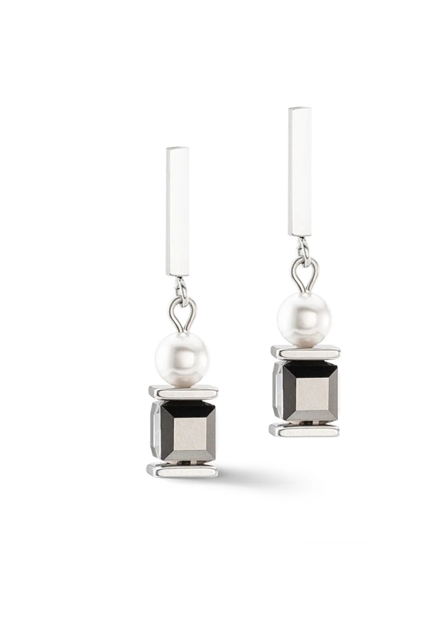Серьги Grey-Vintage Coeur de Lion с черным камнем и жемчужиной. Артикул 4030/21-1230