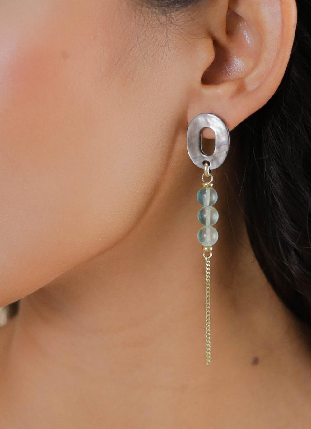 Серьги Fluorite с натуральным перламутром и флюоритом.