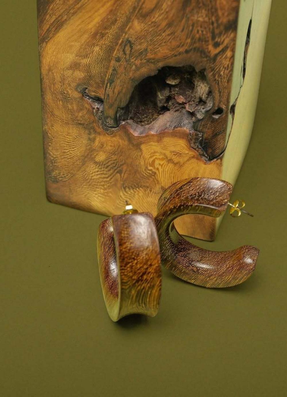 Серьги Komodo полукольца изготовлены из дерева роблес, которое обладает прочной и выразительной текстурой.