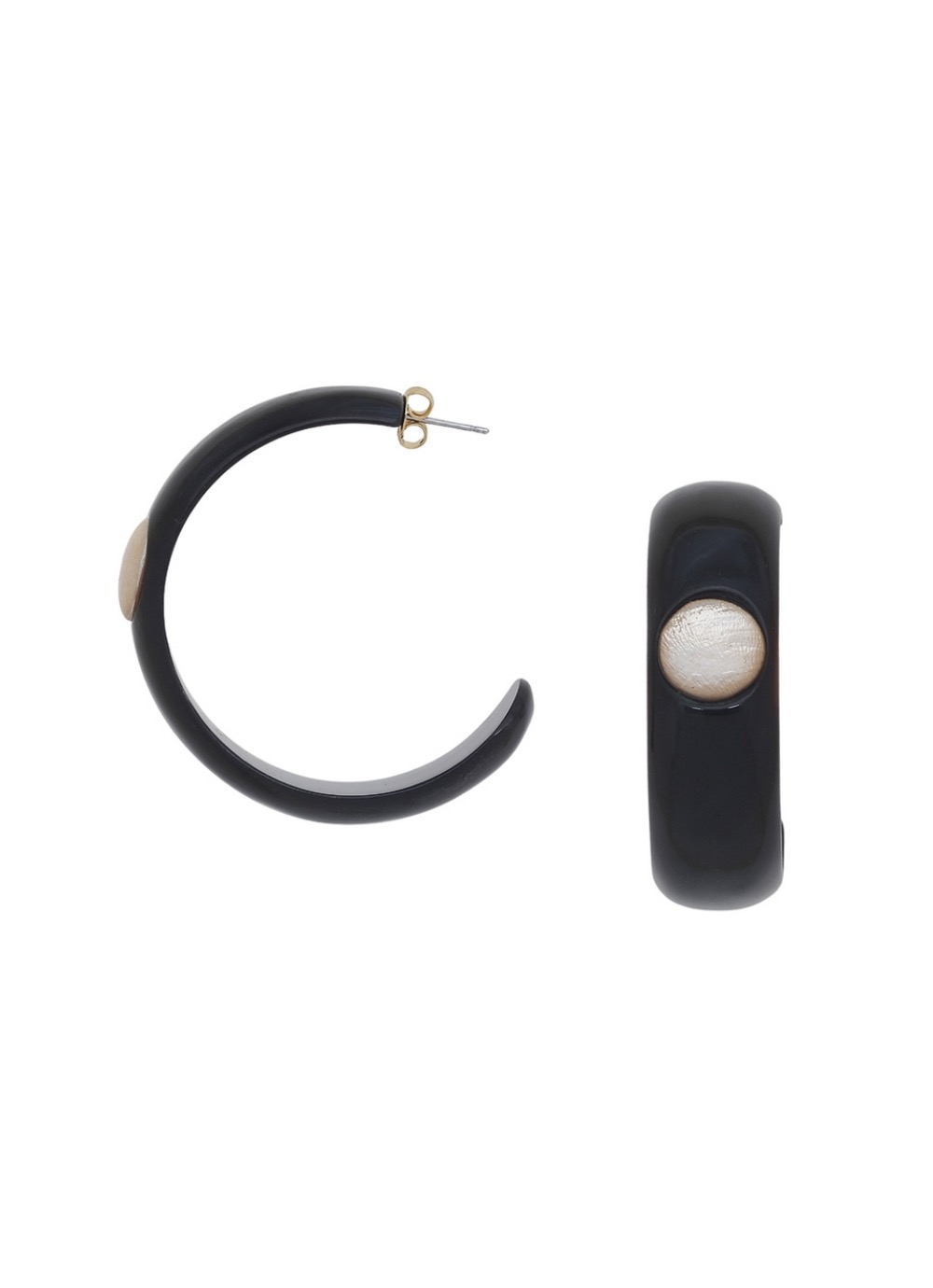 Серьги Sain Honore полукольца из рога с ракушкой Capiz в смоле.