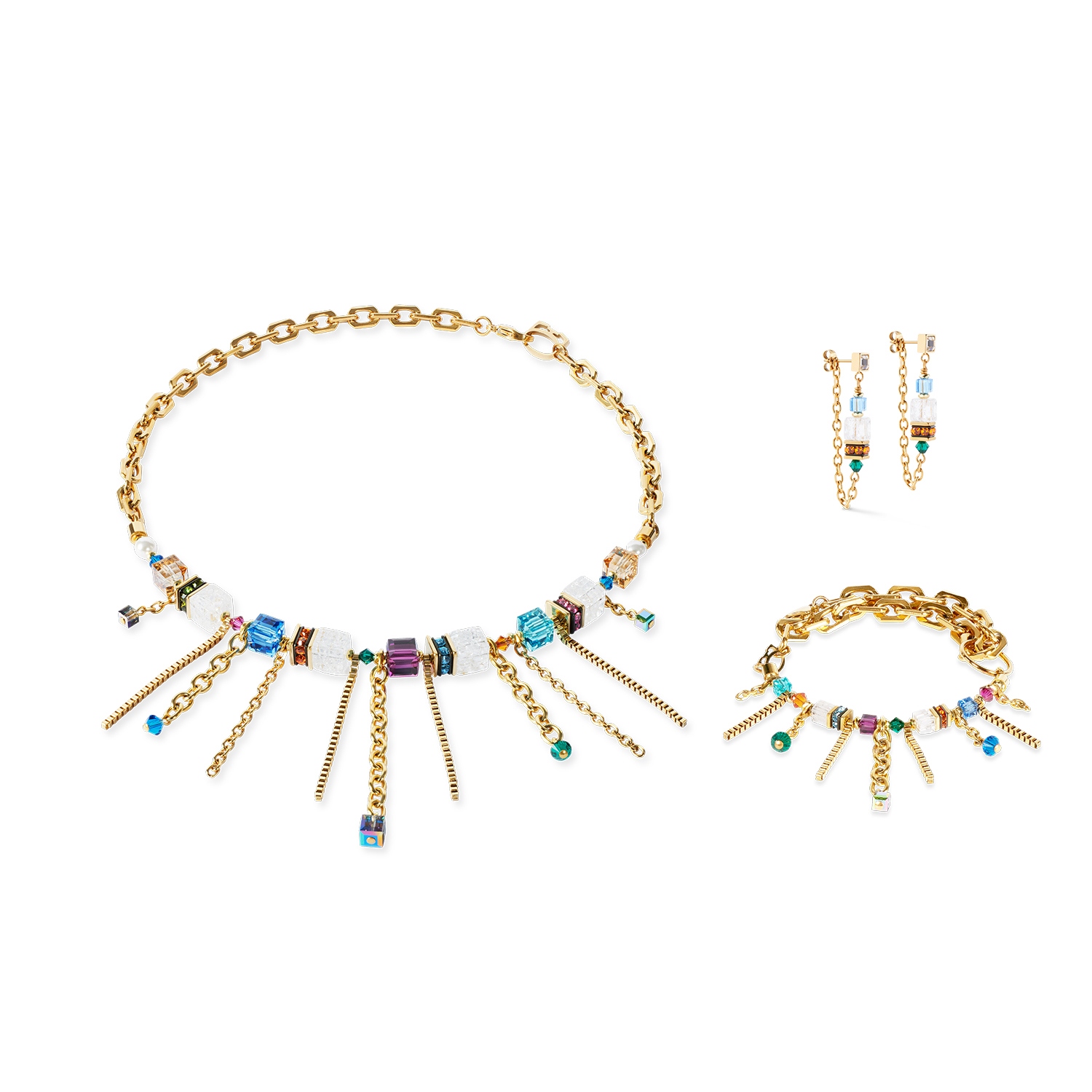 Серьги Sunray Cube Couture gold multicolour Coeur de Lion 3020/21-1516