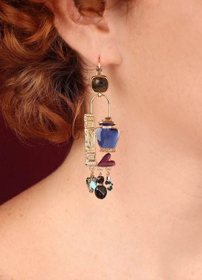смола/слюдяной порошок/вискозная нить/лабрадорит/стеклянная бусина/гематит/черная шпинель/далматинская яшма/металлизированная краска