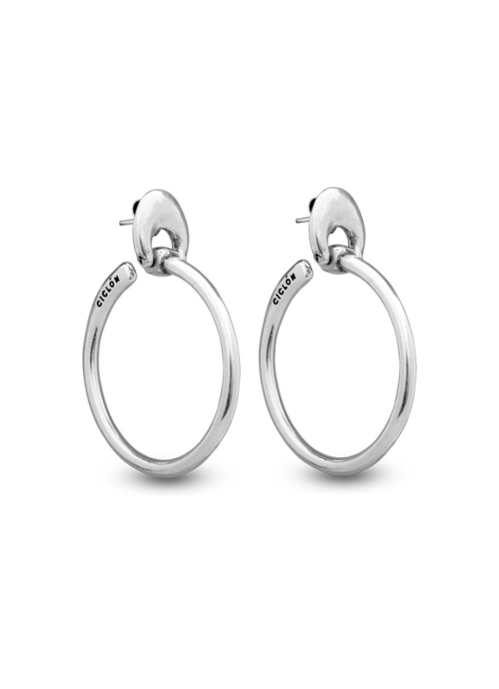 Особенность модели: Серьги выполнены из гипоаллергенного сплава Zamac и покрыты гальваническим слоем серебра (20–25 микрон), что обеспечивает зеркальный блеск и устойчивость к потемнению даже при ежедневном ношении. Застёжка - удобный штифтовой замок с подвижным элементом, который не только упрощает надевание, но и скрывает возможные неровности прокола. Вес пары всего 10 граммов, что гарантирует комфорт в течение всего дня. На внутренней стороне каждого кольца выгравировано название бренда CICLON, подтверждающее подлинность и качество.