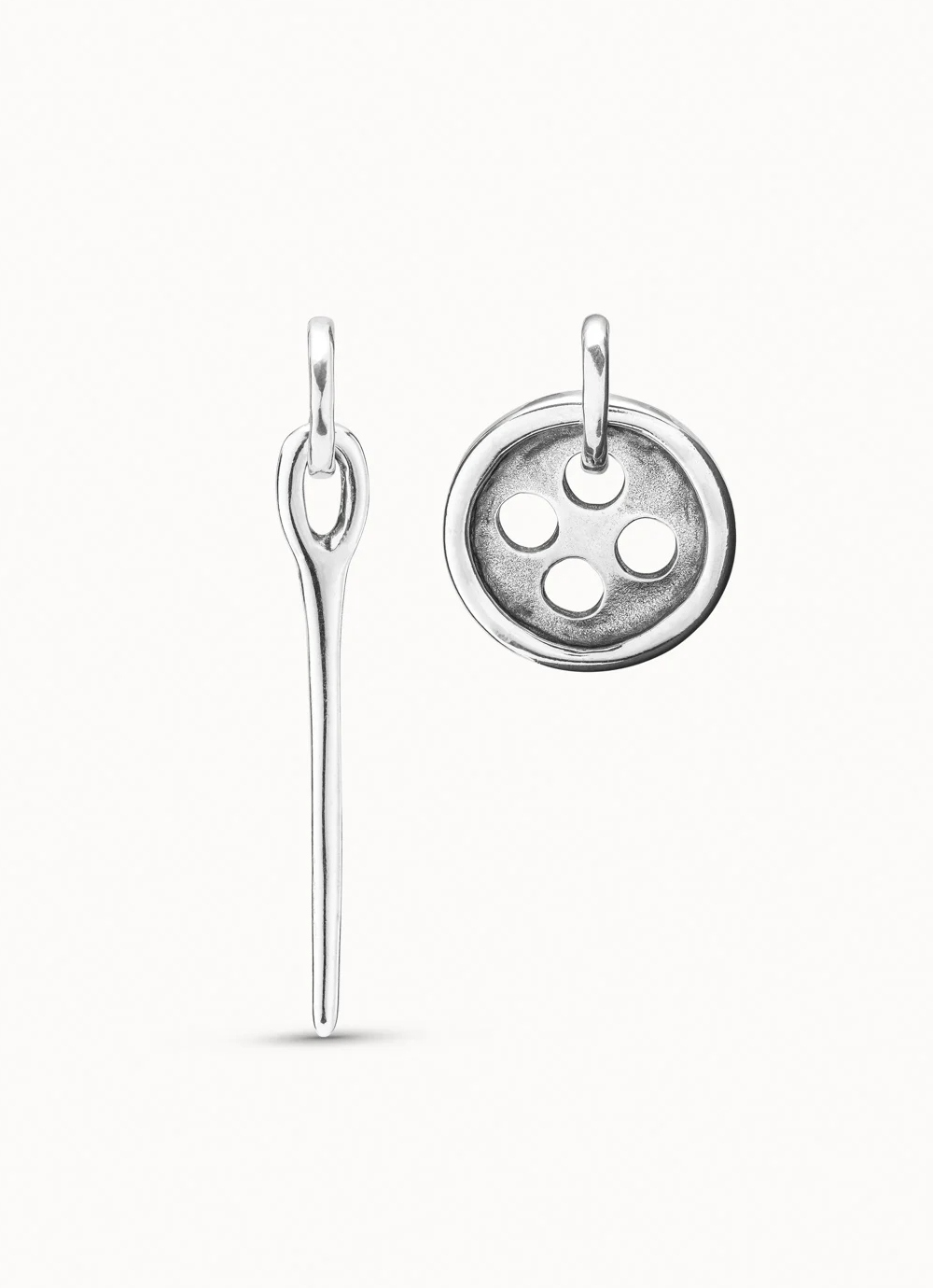 Уникальные украшения ручной работы UNOde50. Серьги "Needle and button" из коллекции Basic. Размер ONE SIZE. Цвет серебряный.